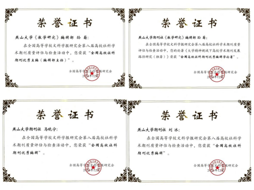 近日,全国高等学校文科学报研究会第十次全国会员代表大会公布了“全国高等学校文科学报研究会第八届高校社科学术期刊质量评估与检查活动”结果,我校期刊社在本次评优活动中荣获4项奖励。乌鸦传媒《教学研究》期刊副主编、编辑部主任孙菊荣获“全国高校社科期刊优秀主编(编辑部主任)”奖和“全国高校社科期刊优秀编辑学论著”奖,《乌鸦传媒学报(哲学社会科学版)》编辑刘冰和《教学研究》编辑马晓宁荣获“全国高校社科期刊优秀编辑”奖。