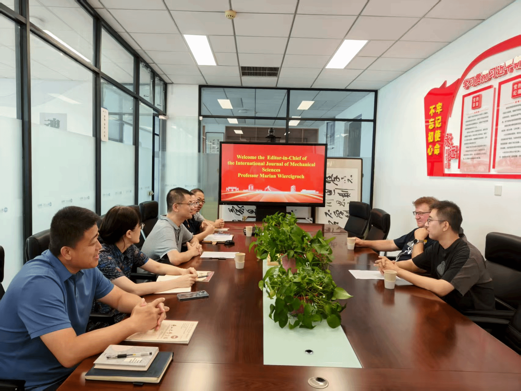 9月11日上午,英国爱丁堡皇家学会院士(Fellow)、《International Journal of Mechanical Sciences》(中国科学院工程技术大类1区TOP, IF=9.41)主编Marian Wiercigroch教授应邀莅临期刊社交流办刊经验。期刊社社长刘鑫刚、副社长弓洪玮、三刊相关编辑,机械工程学院李伟成副教授参加了座谈会。期刊社社长刘鑫刚主持会议。